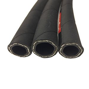 SAE 100R1AT single steel wire braided hose is a typical medium pressure hydraulic hose and strongly recommended for hydraulic lines or general industrial system. It can bear higher working pressure than other rubber hoses thanks to its high tensile braided steel wire reinforcement. It is composed of three parts: tube, reinforcement and cover. The tube is made from oil resistant synthetic rubber, making the hose have excellent performance in delivering oils. The reinforcement is made from one layer of high tensile braided steel wire, making the hose have outstanding high pressure resistance. The cover is made from high quality synthetic rubber, making the hose resistant to abrasion, corrosion, weather, ozone, aging, sunlight and cut. Therefore, it has longer service life.